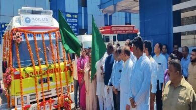 केंद्रीय राज्य मंत्री श्री कुलस्ते एवं प्रदेश के स्वास्थ्य मंत्री डॉ. चौधरी दी हरी झंडी एक और एंबुलेंस को